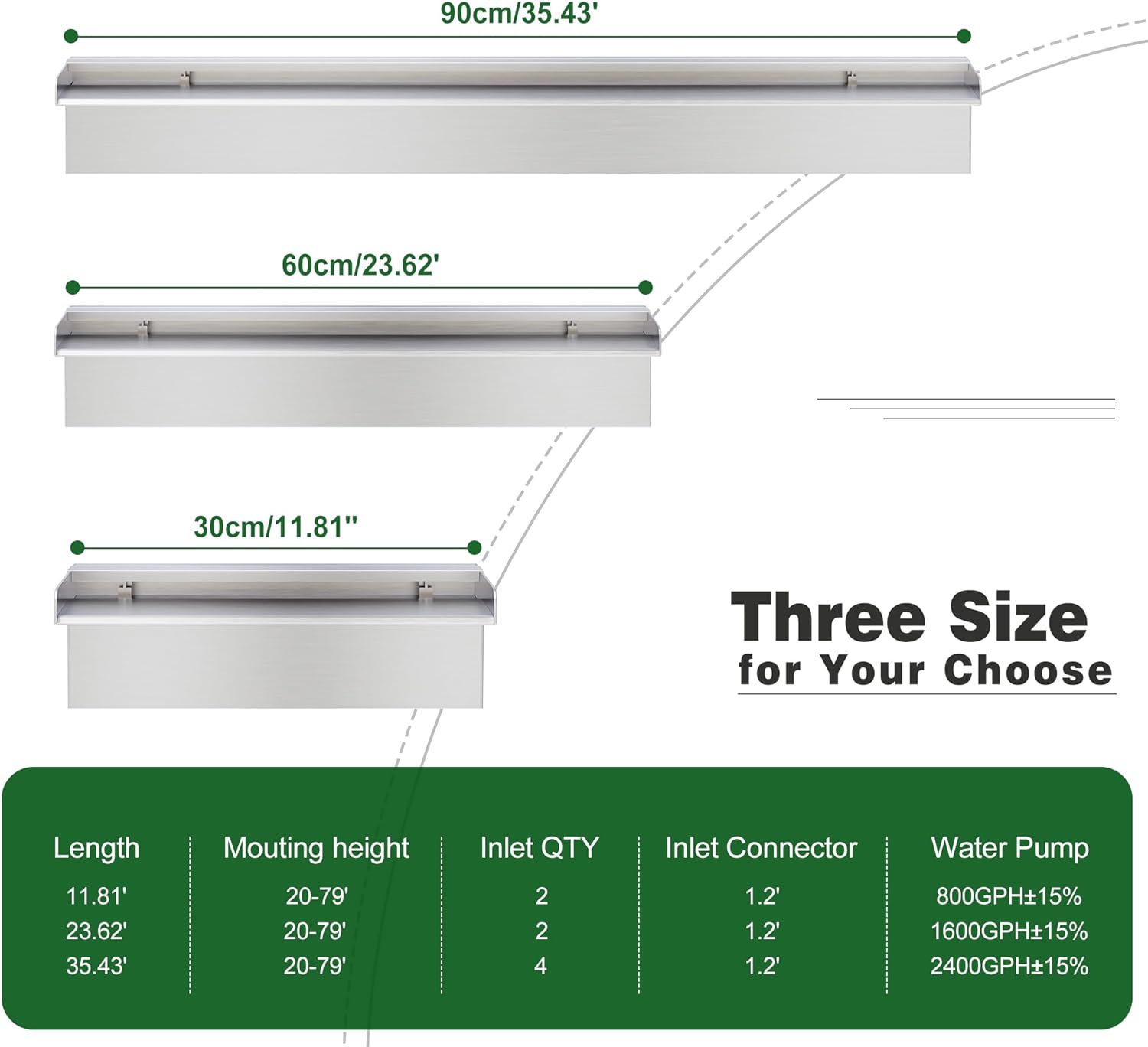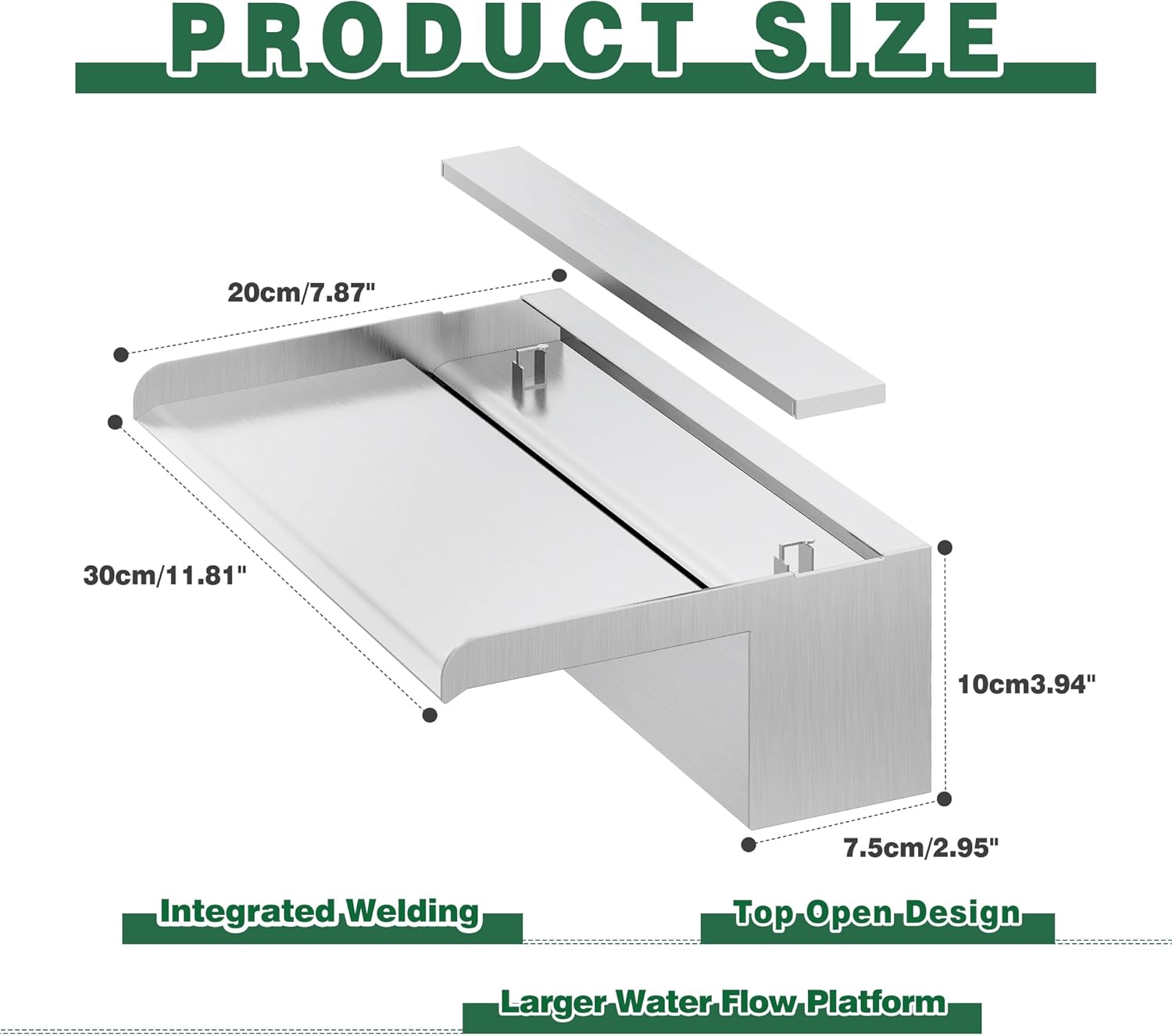 - 【Anti-Rust Spillway Waterfall】- The main body of this stainless steel spillway waterfall is welded together using 304 stainless steel for stable long-term use, featuring an top open lip design that creates elegant, invigorating, freefalling water effects to add a decorative touch to ponds and pools, letting you enjoy the relaxing sounds of water for a sense of calm and well-being. LED light strips not included, but available separately.