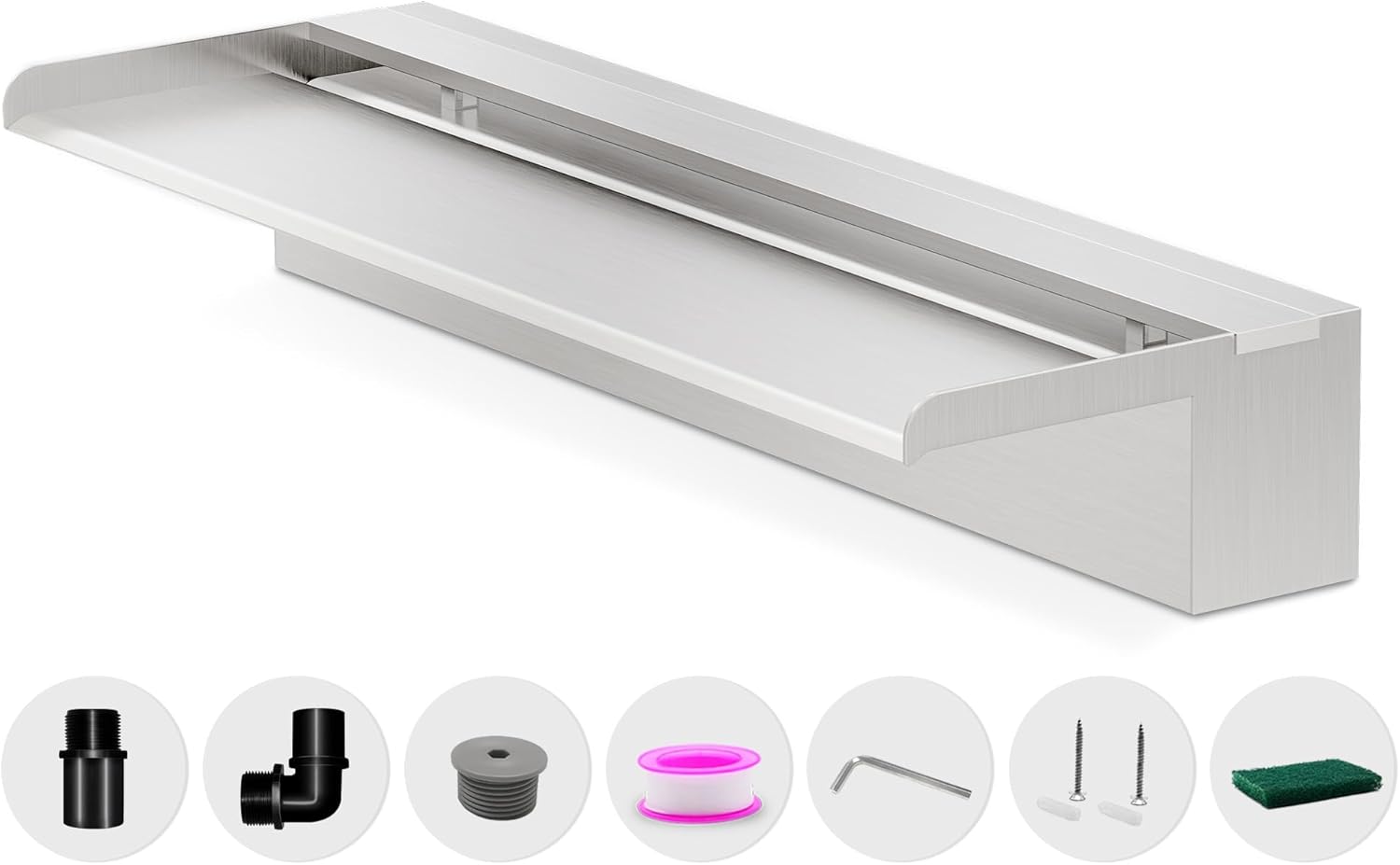 - 【Anti-Rust Spillway Waterfall】- The main body of this stainless steel spillway waterfall is welded together using 304 stainless steel for stable long-term use, featuring an top open lip design that creates elegant, invigorating, freefalling water effects to add a decorative touch to ponds and pools, letting you enjoy the relaxing sounds of water for a sense of calm and well-being. LED light strips not included, but available separately.