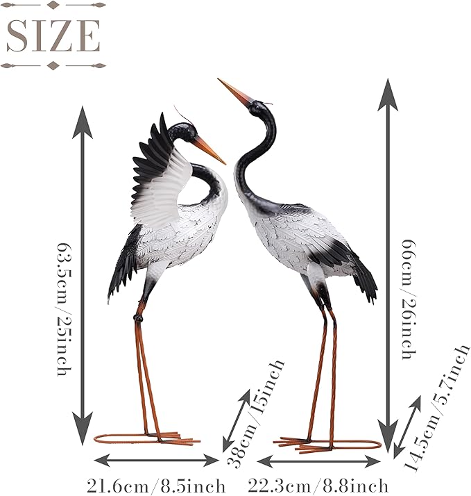 - 【Original Design】These metal crane statues feature a beautiful blue color that glimmer in the sunlight, adding a lovely touch to any decor