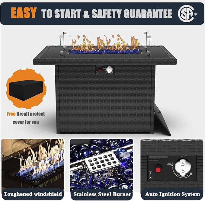 - 60000 BTU FIRE PIT TABLE: With electronic pulse ignition, leak-proof safety valve and adjustable heating button, high quality steel and hose to improve stability and safety of the igniter, allowing you to enjoy an outdoor campfire in the evening.