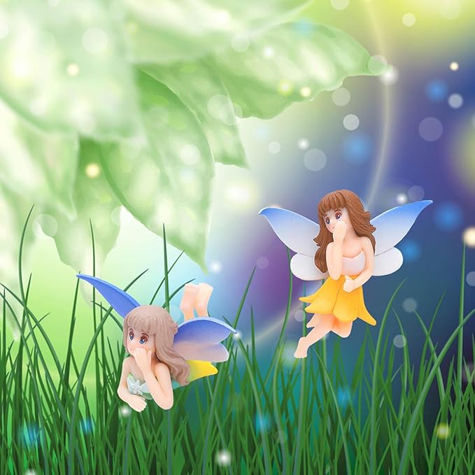 ONEST 6 Pieces Miniature Fairy Garden Accessories Small Fairy Figurines Hand Painted Fairy Figures Girl Fly Wing Figurines for Car Decor Fairy Garden Flower Pot Birthday Cake Topper