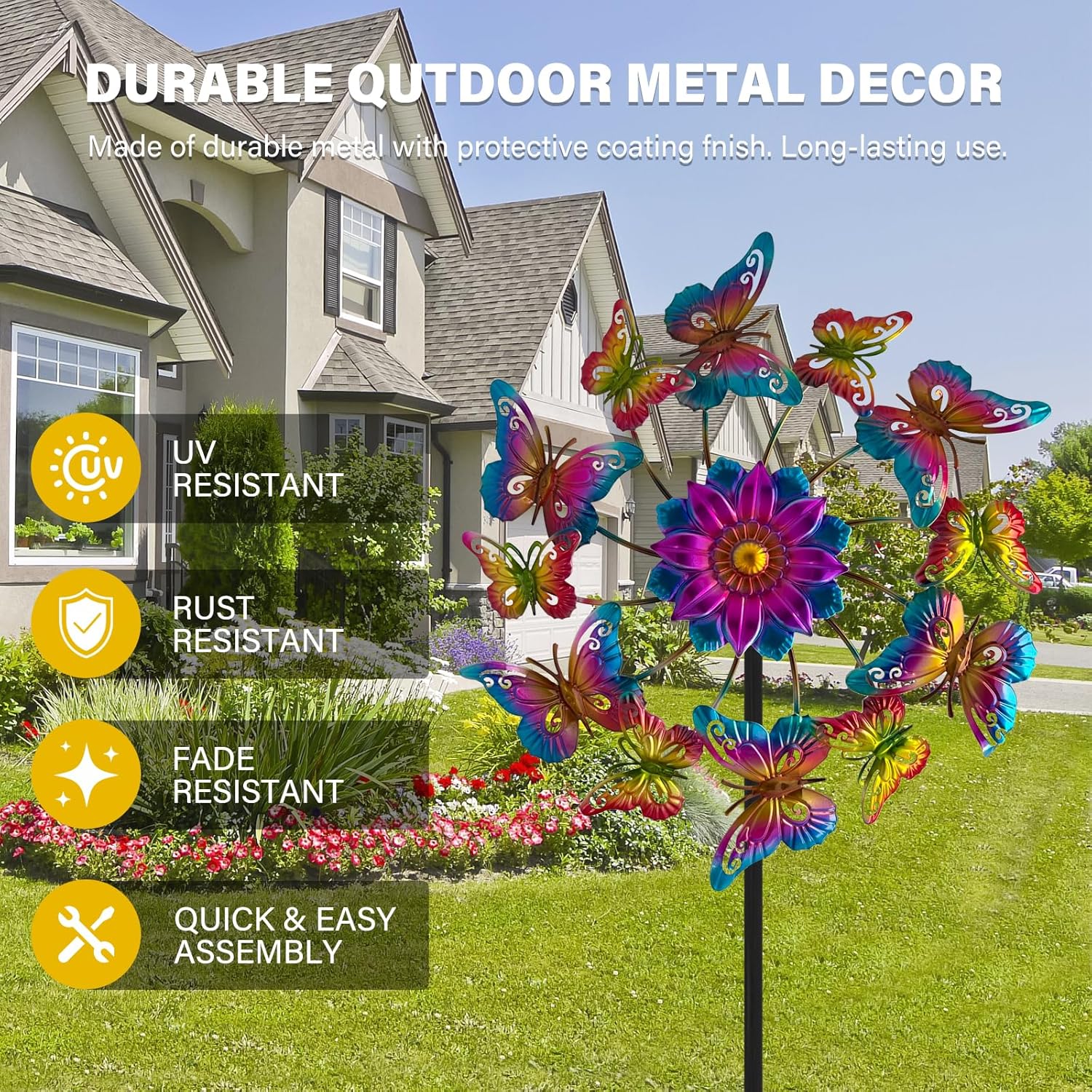 - 【Garden-themed Decoration】Crafted from high-quality metal, our windmill is corrosion-resistant and rust-proof. You can choose different elements to match your garden and yard, bringing unique and eye-catching elements to your outdoor space.