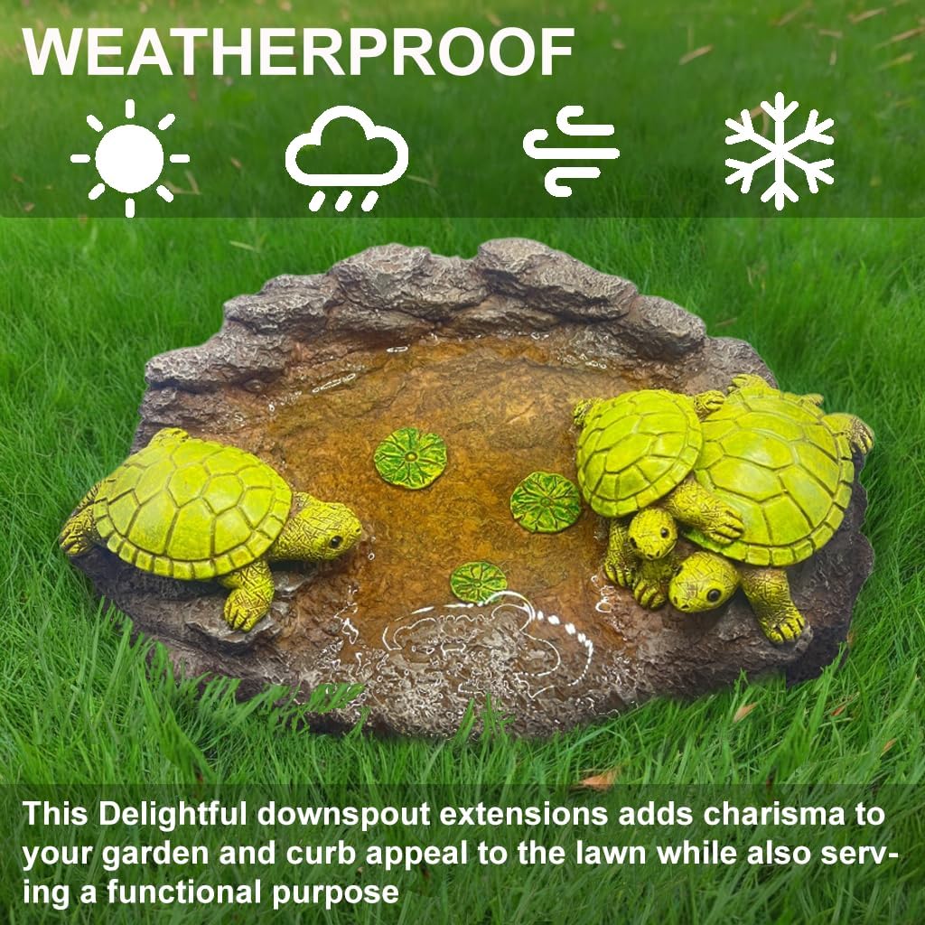 - 3. Eye-Catching Turtle Design Featuring three lifelike turtle sculptures, this gutter splash block combines style with practicality. The intricate details make it a standout piece that enhances your outdoor space while functioning as an effective splash guard.