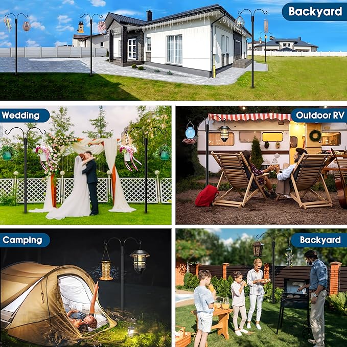 - Dual Hook Design: The double hooks are versatile and can hold multiple bird feeders, bird baths or flower pots, convenient for hanging decorative flowers and outdoor string lights, a practical and stylish embellishment in your garden.