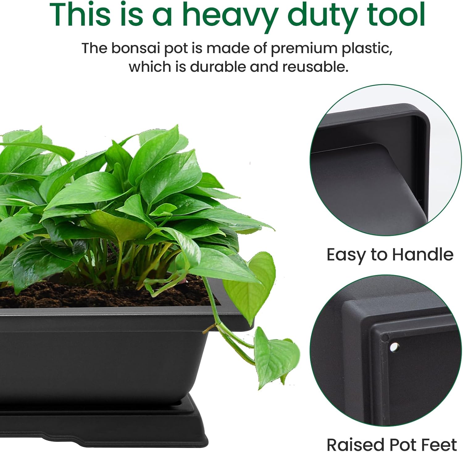 - π² Premium Plastic Material - GROWNEER bonsai tree pots are made from durable plastic humidity trays that are lightweight yet sturdy. They are not easily deformed or cracked even if accidentally dropped. The reinforced edge design makes them easier to handle during movement. These bonsai pots can maintain their color in various weather conditions and do not fade like some other plastic pots.