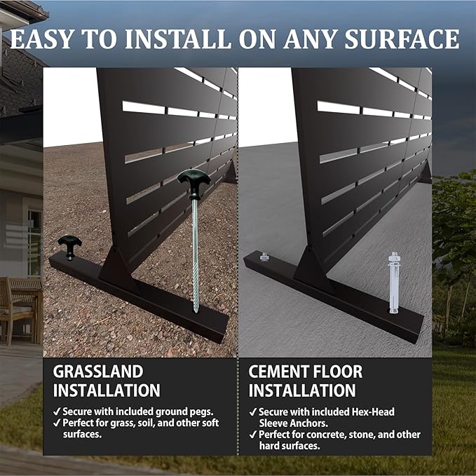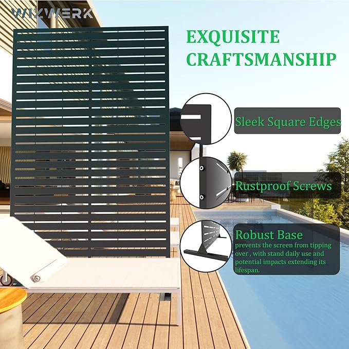- ๐ฃ๐ฟ๐ฒ๐บ๐ถ๐๐บ ๐ข๐๐๐ฑ๐ผ๐ผ๐ฟ ๐ ๐ฒ๐๐ฎ๐น ๐ฃ๐ฟ๐ถ๐๐ฎ๐ฐ๐ ๐ฆ๐ฐ๐ฟ๐ฒ๐ฒ๐ป: Crafted from durable, weather-resistant steel, this 6ft ร 3.7ft privacy panel is built to withstand outdoor conditions, providing reliable and stylish privacy for years.