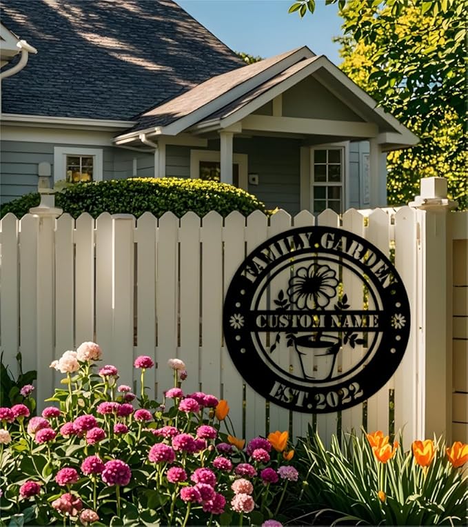 - Personalized Family Garden Metal Sign:Celebrate your love for gardening with this custom family garden-themed metal sign, personalized with your family’s name. It adds a charming and personal touch to your garden, patio, or front yard, making it the perfect decoration for outdoor spaces.