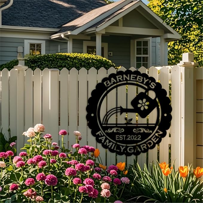 - Personalized Family Garden Metal Sign:Celebrate your love for gardening with this custom family garden-themed metal sign, personalized with your family’s name. It adds a charming and personal touch to your garden, patio, or front yard, making it the perfect decoration for outdoor spaces.