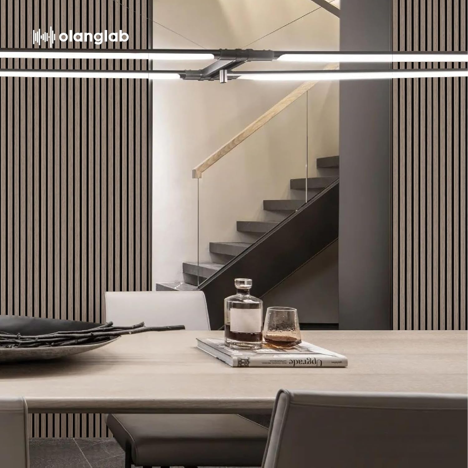 - Recyclable Material: Olanglab wood 3D wall panels consist of MDF slats and acoustic felt backing, they are made of recyclable and reusable materials that contribute to promoting sustainability.