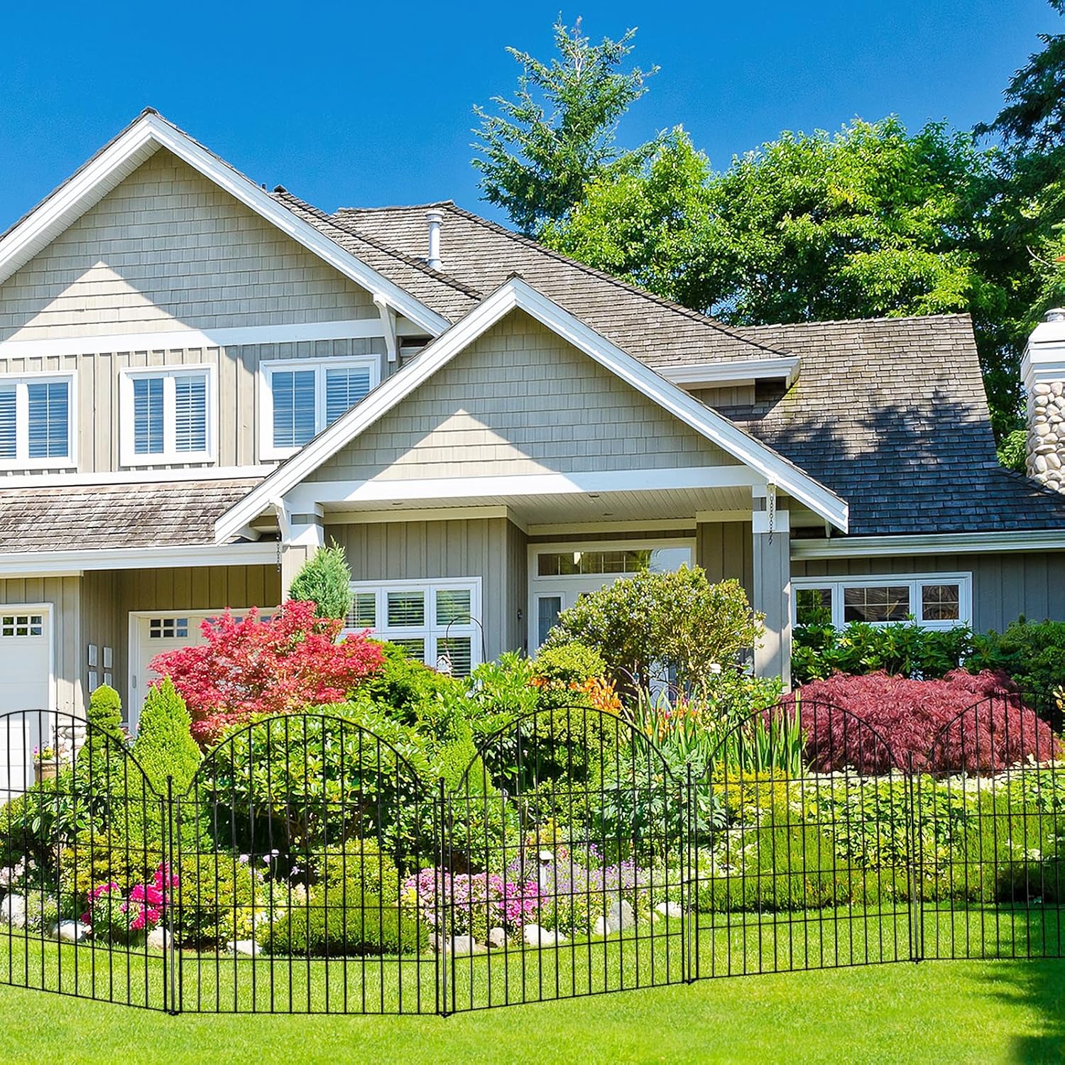 - 【Detailed Dimensions】Blingluck garden fence includes 5 pieces of fence panels measuring 32" H & 29" W, 6 metal stakes that are 35 " H. The Blingluck decorative garden fencing has a total height of 38 inches (6'' metal stakes in soil ), with a 1.8-inch fence gap. Total Length is about 11.8 ft. Easier and more sturdy installation