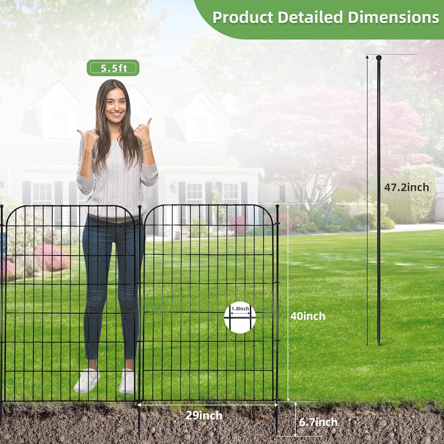 Decorative Garden Fence, 10 Panels 40 in(H) X 23.6 ft(L) Rustproof Metal Wire No Dig Dog Fence Outdoor for Yard, Temporary Tall Garden Fence Animal Barrier Decor for Yard & Patio