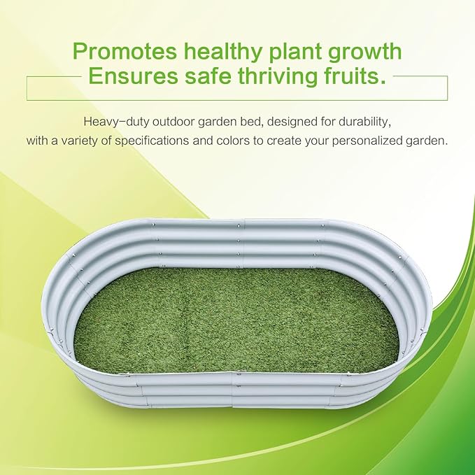 - EASY TO ASSEMBLE: Set up your garden bed, in just minutes and easy to put it together, it can be reused for many years. Our raised garden beds feature an oval design with no sharp corners to cover the edges providing protection from injury. Get started on your garden right away and enjoy fresh, healthy produce in no time.