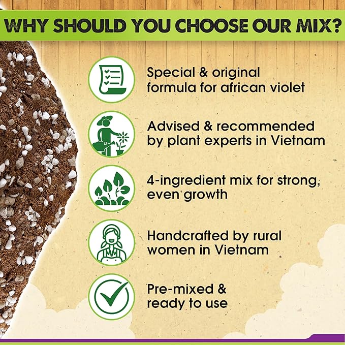 - 🌸 Hand-Crafted & Ready-to-Use: Meticulously mixed for consistent quality, our pre-mixed african violet potting mix saves you time and effort, providing an optimal growing medium for your African violets from the very start.