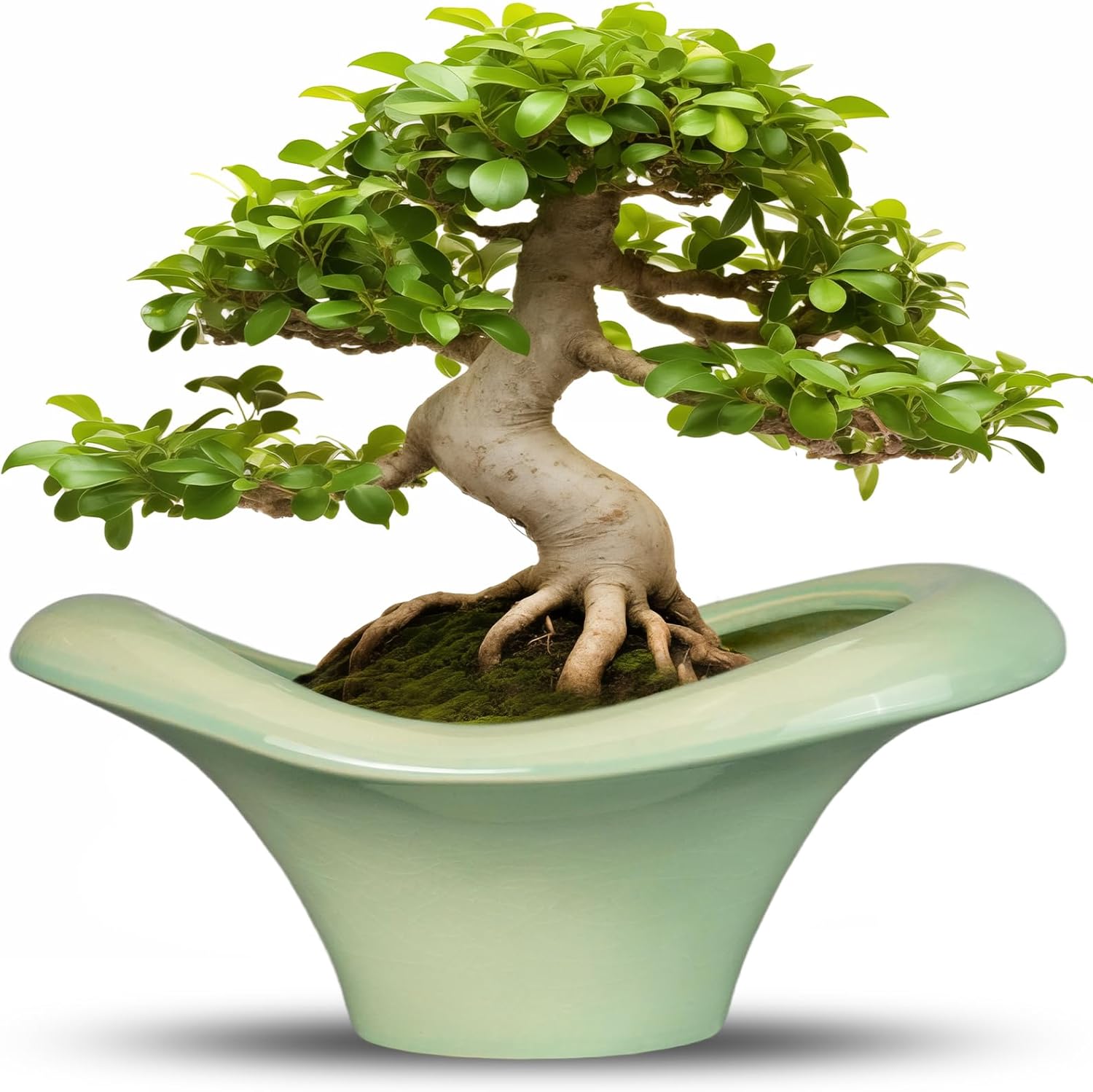Ceramic Bonsai Pots - Large Succulent Planter 13 Inch Plant Pot Indoor Succulent Pot with Drainage Hole Outdoor Planter Bonsai Tree Pot for House Home Garden Office Decor Green