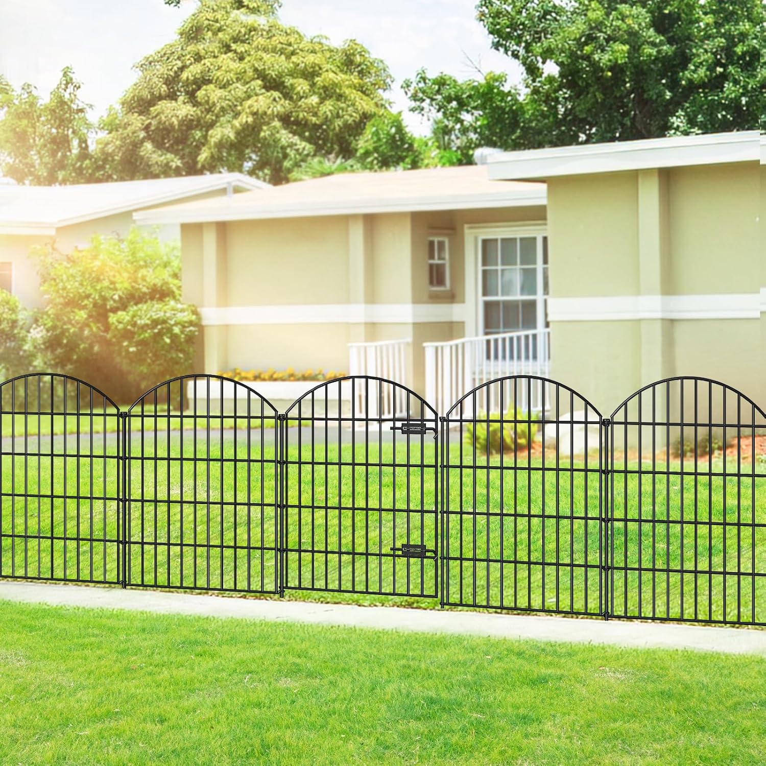 Metal Garden Fence with Gate 36in (H) x 23.3ft (L), 1 Gate+ 9 Panels Dog Fence Border Fence Animal Barrier, No Dig Garden Fencing for Yard Flower Bed Lawn Patio Outdoor, ECG3610, Black
