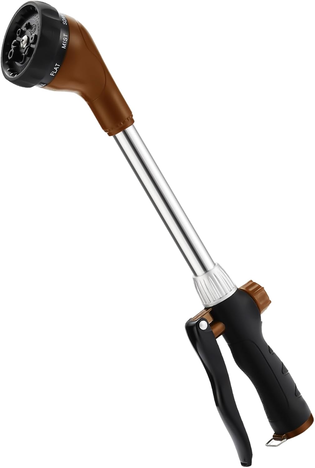 GREEN MOUNT Watering Wand, Heavy Duty Garden Hose Wand with 8 Spray Patterns, 16-Inch Hose Sprayer Nozzle with Flow Control, Ideal for Lawn and Garden Use, Bronze