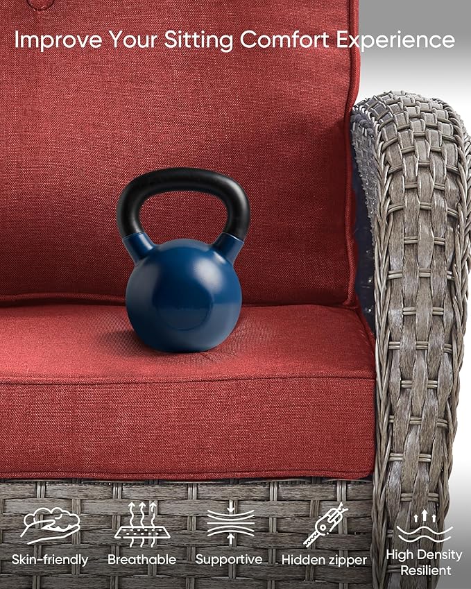 - Thick Cushions for Lasting Comfort and Support: These 4-inch thick cushions are filled with high-density resilient sponge, providing excellent support and long-lasting comfort. The wide seating design ensures plenty of space to relax, while the cushions retain their shape and bounce back after each use, never compressing. Perfect for outdoor lounging, these cushions offer both softness and durability, giving you a superior seating experience for years to come.