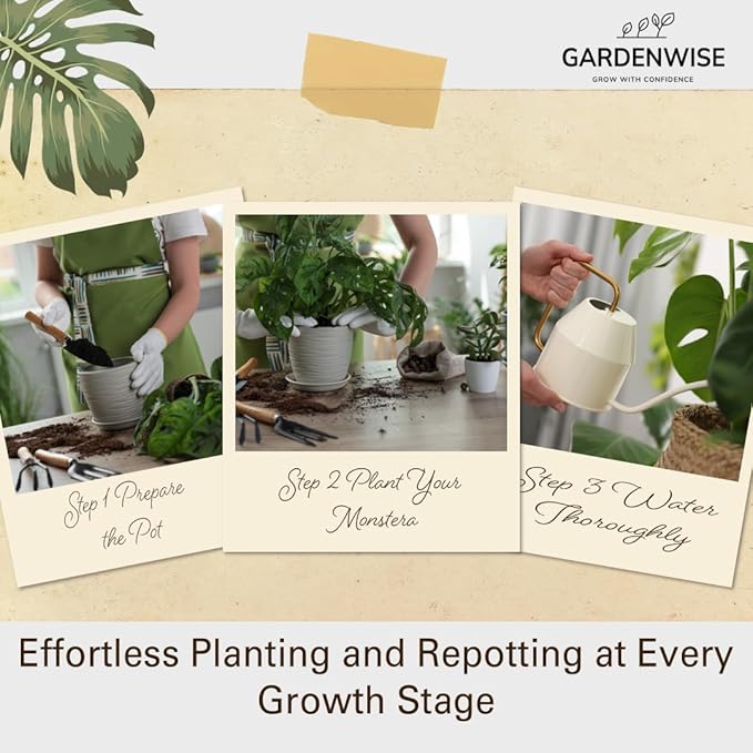 - PERFECTLY DESIGNED FOR MONSTERA: Our organic, fast-draining soil mix is expertly crafted for Monstera Deliciosa, Albo, and more. It promotes strong root growth, prevents leaf yellowing, root rot, and brown tips, creating the ideal environment for thriving plants. Expect stunning new leaves with signature splits, adding vibrant greenery and natural beauty to your space.