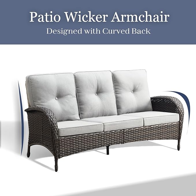 HUMMUH Outdoor Patio Couch-Outdoor Rattan Couch with Thick Cushions Outdoor Sofa for Deck Lawn Porch Balcony Poolside-Brown/Beige