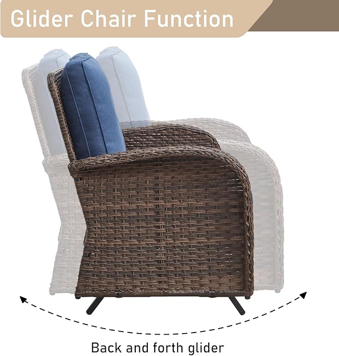 - Multi combination and function:This series of outdoor furniture set includes a variety of combinations, including functions such as swivel and glider chairs,rocking chairs,glider loveseat,suitable for a variety of scenarios,garden,balcony,deck,patio,porch,poolside,yard,corridors,sunrooms,etc.