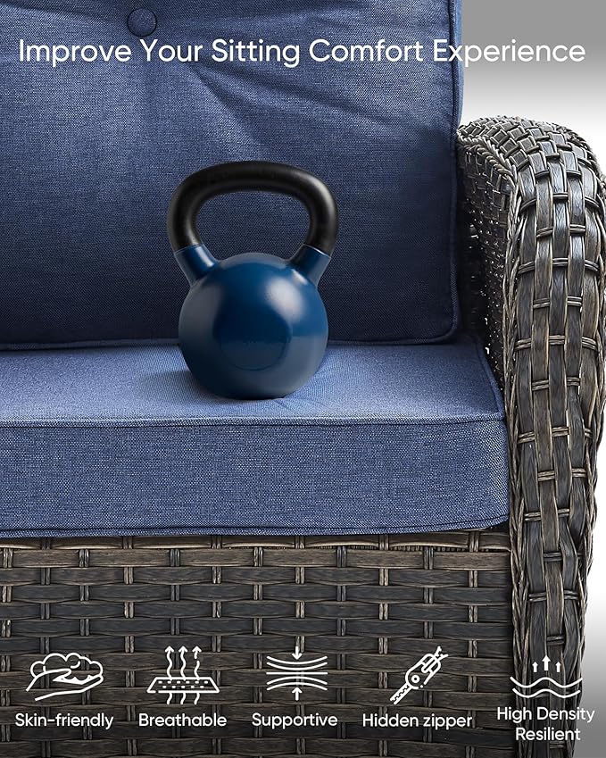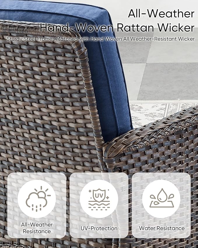 - Durable and Sturdy:Crafted with a powder-coated steel frame, these weather-resistant UV protection pieces are wrapped in hand-woven PE wicker to make this outdoor furniture set durable and sturdy.