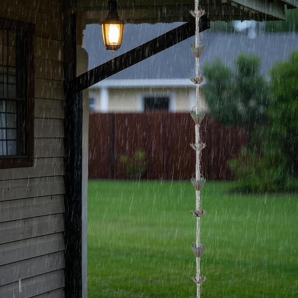 - Artistic Atmosphere: The rain chain for gutters consists of 16 vintage lotus cups. As rainwater trickles down the chain, give the quiet courtyard an elegant and unique beauty