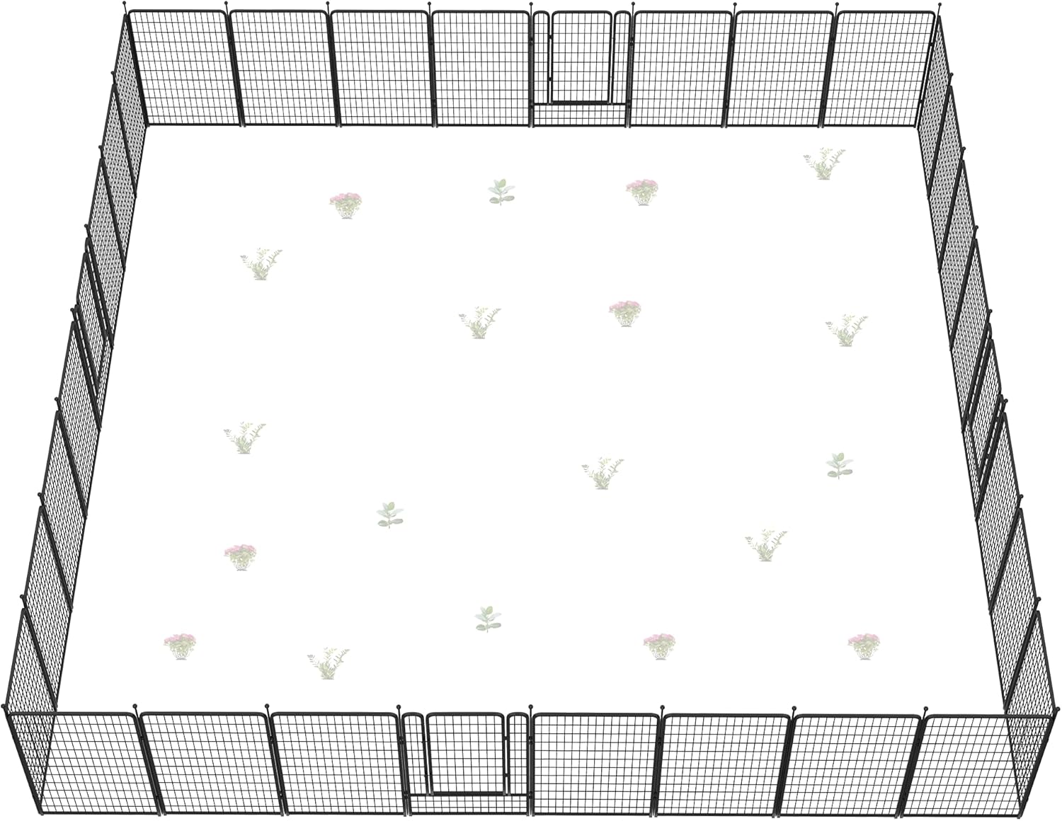 FXW Garden Fence Outdoor for The Yard – 50in(H) x 83.5ft(L) Heavy Duty Metal Animal Barrier for Dog and Rabbit, Decorative Dog Fence, 32 Panels, Black