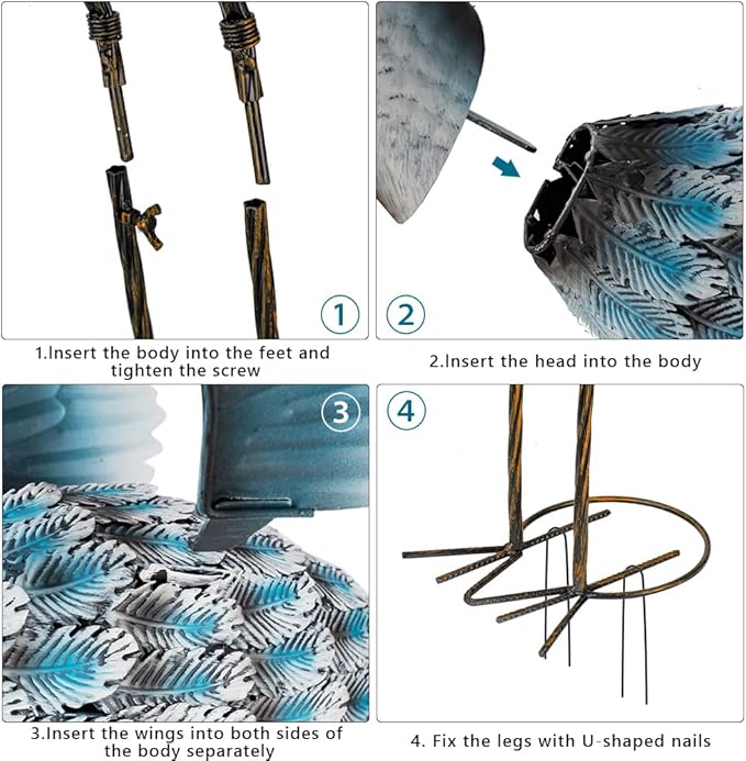 - Easy to Install: The crane garden statue is easy to install and can be completed in a few minutes. And equipped with U-shaped nails, it's convenient for you to fix the outdoor statues for garden on the lawn