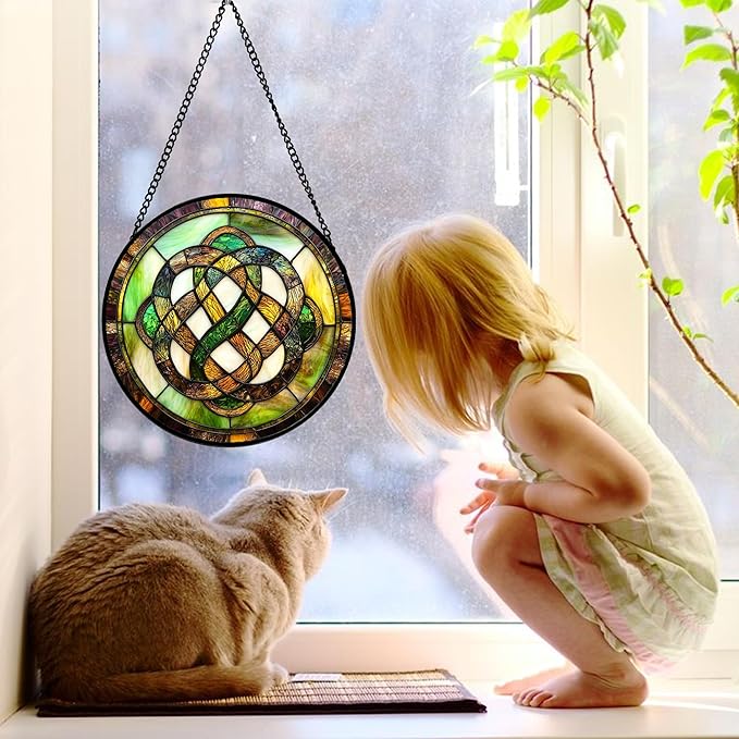 - Versatile and Easy to Hang: This stained glass window panel is a breeze to install with its included metal chain. Beautiful patterns are the perfect addition to your windows, doors, and home.