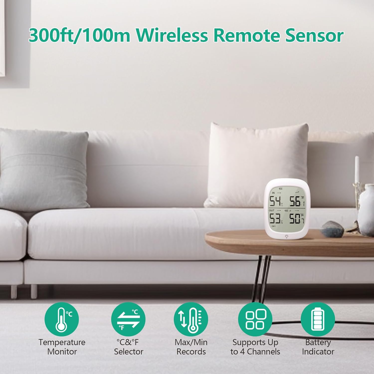- ๐ฏ๐ฏ๐ฌ๐๐ง ๐ง๐ฟ๐ฎ๐ป๐๐บ๐ถ๐๐๐ถ๐ผ๐ป: Outdoor wireless temperature humidity accurately measure temperature and humidity up to 330 ft away, can penetrate obstacles. Temperature and humidity monitor continuously transmits real-time data, such as current temperature, humidity, and battery status, to the main unit at regular intervals, providing users with robust and dependable data support.