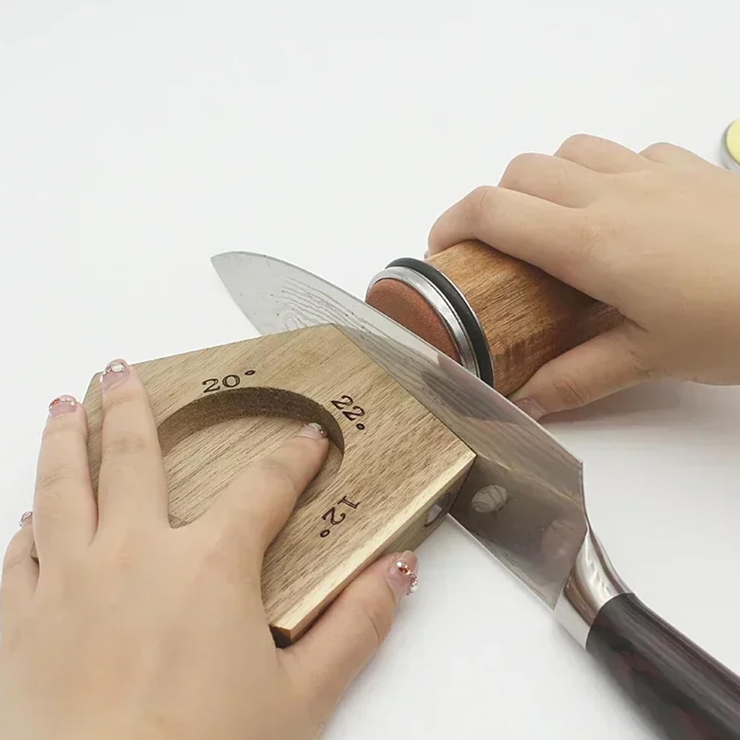 - 【Material Description】The rolling knife sharpener and magnetic base are made of natural wood, It is suitable for grinding and maintenance of most cutting tools, including kitchen knives, fruit knives, etc