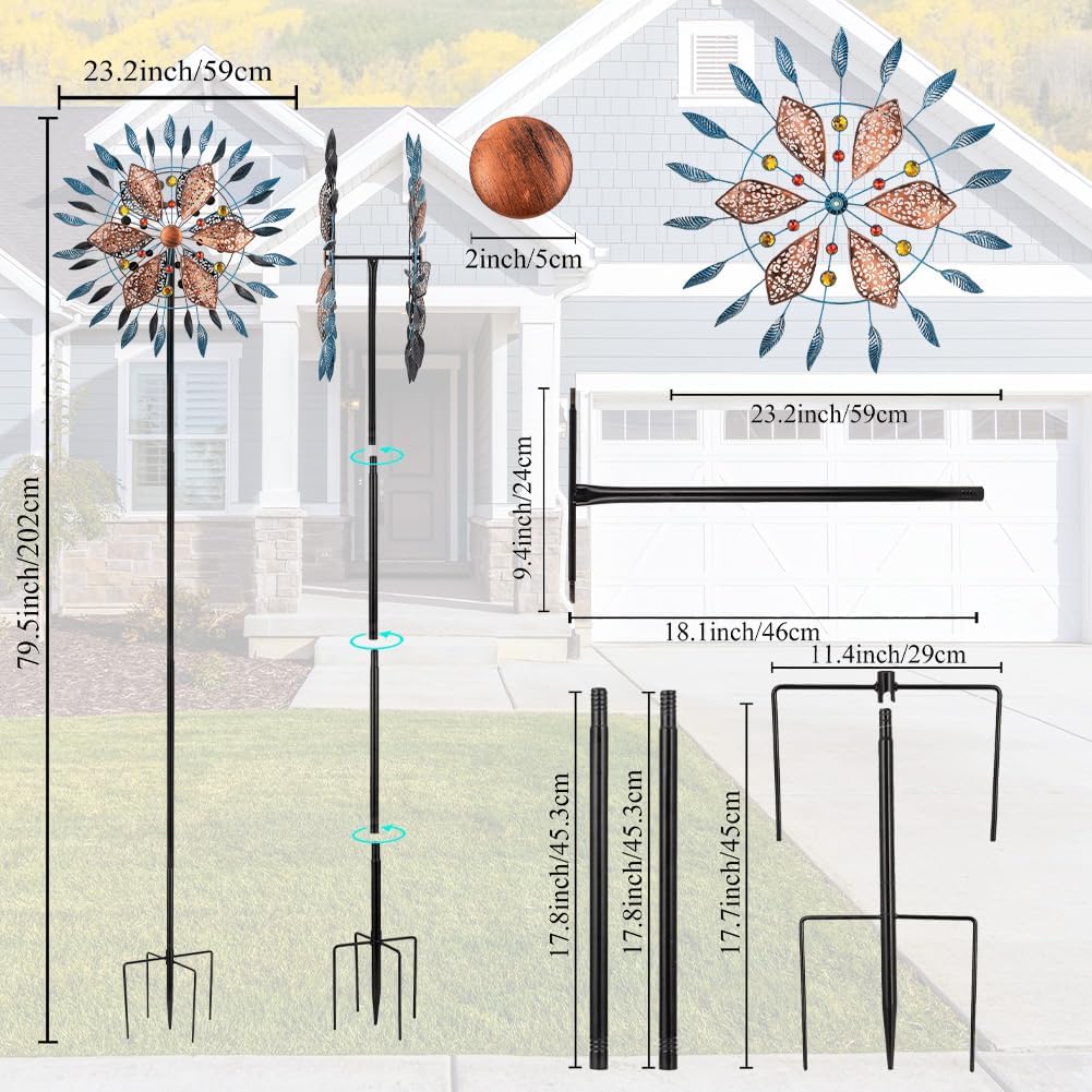- Super Construction:This double wind sculptures & spinners has a solid metallic construction, blades can smoothly spin on sealed bearings, adding vitality and color to your garden
