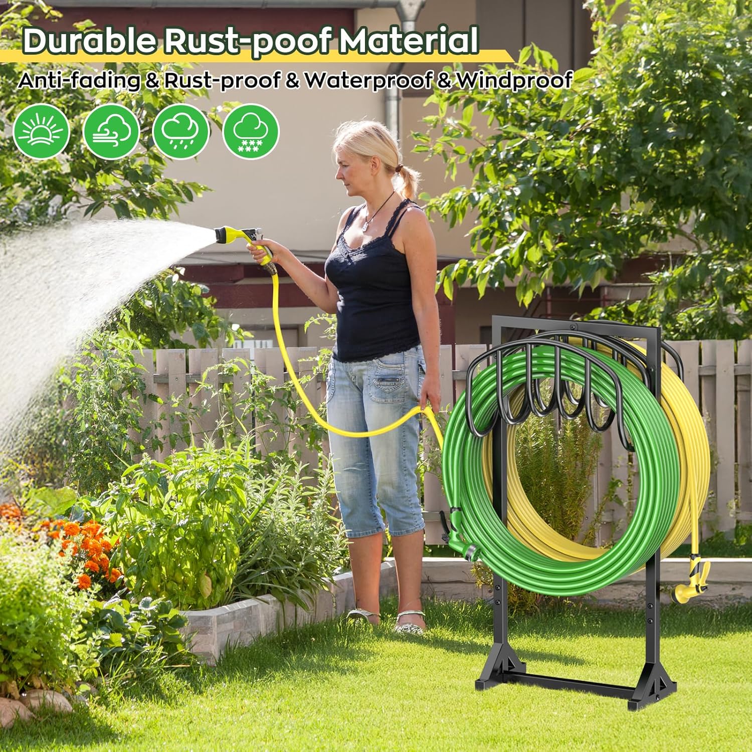 - 【2-in-1 Dual Hose Storage & Organization】 Maximize space efficiency with double-sided hooks, designed to securely hold two heavy-duty hoses (up to 150ft each). Perfect for large gardens, lawns, or professional landscaping needs.