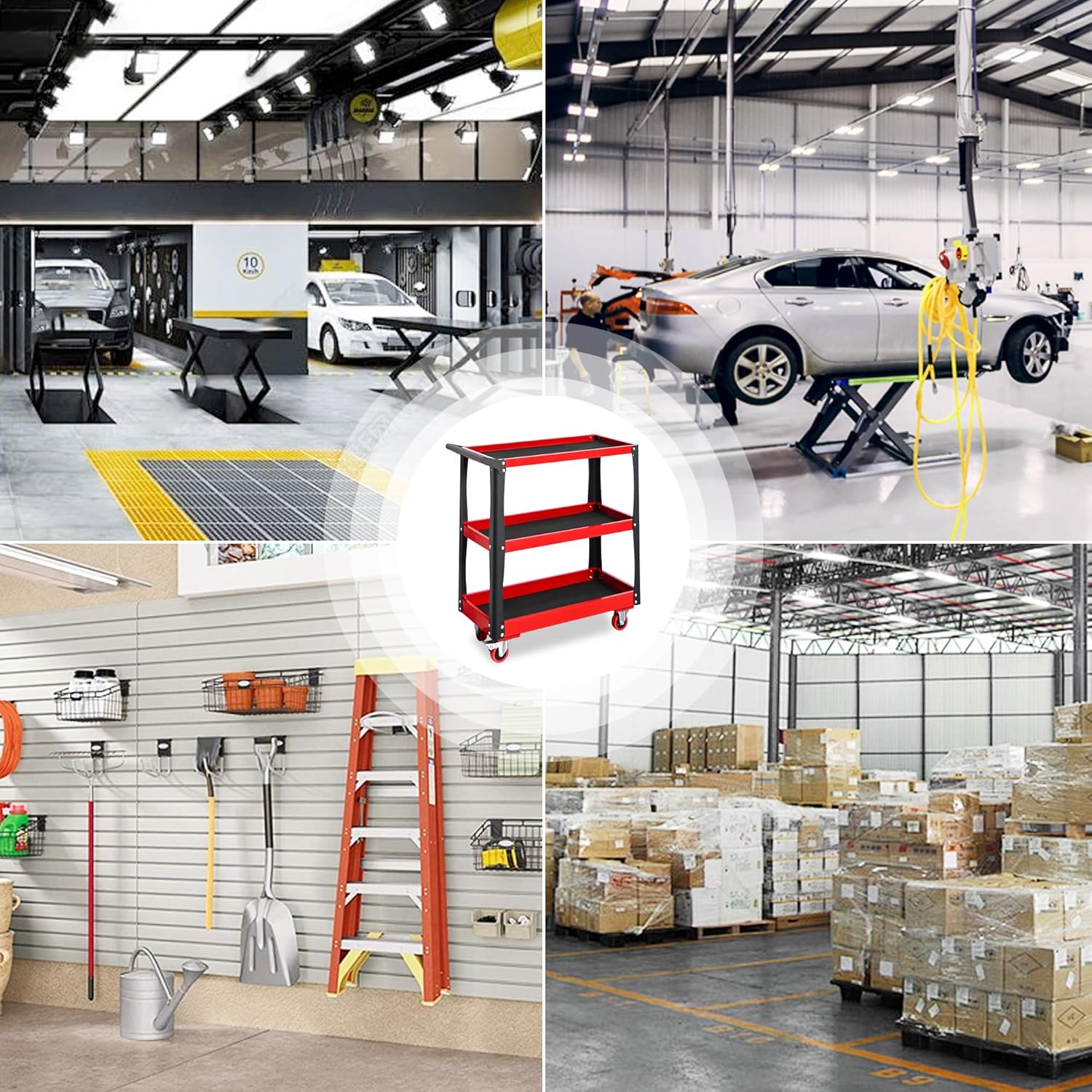 3 Tier Tool Cart with Wheels, Heavy-Duty Steel Utility Rolling Cart, 660 lbs Loading Capacity for Workshop, Garage, Warehouse, Repair Shop