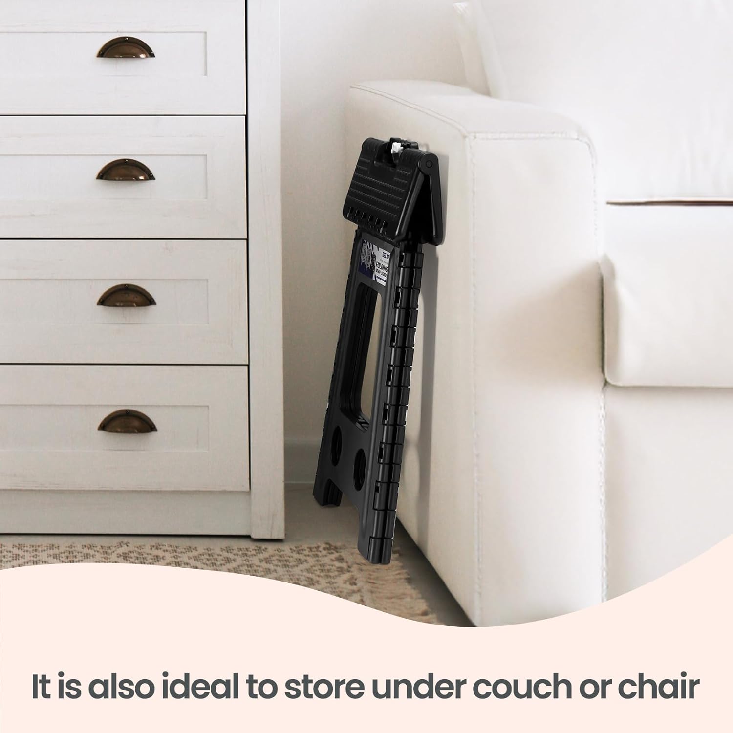 Delxo Folding Step Stool 17.5 Inch Non-Slip Foldable Stools for Kids & Adults Up to 300 LBS Kitchen Collapsible Fold Up Stepping Stool with Dotted 1 Pack Black
