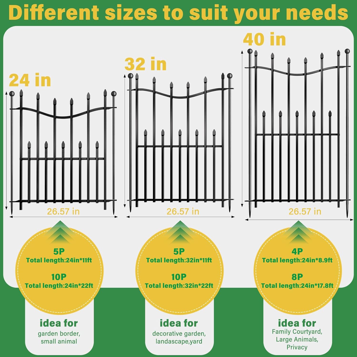 - 📐 Flexible Garden Setup-Each panel can be connected to create custom layouts for different outdoor spaces. Whether you're building a low fence for garden borders or a garden fence with gate, it’s easy to adjust and expand as needed.