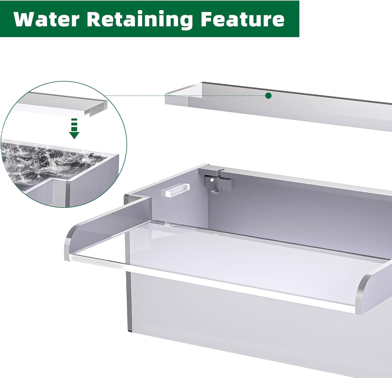 - 【One Year Replacement Committment】- This elegant cascading water feature requires a separately obtained pump for operation. We stand behind our products, and our dedicated support team is available to address inquiries regarding this product, offering prompt responses within a day. Please browse our other products for pool fountain accessories in our store. Waterfall only. LED light strips additional purchase.