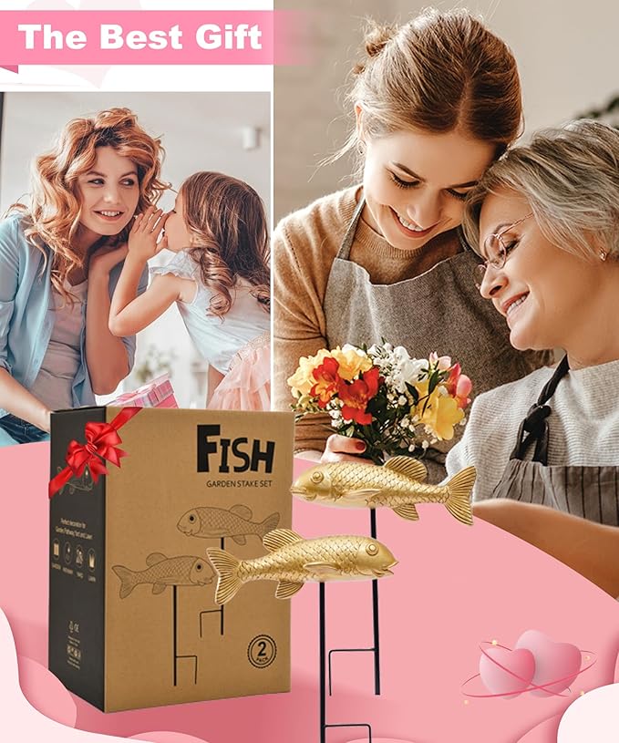 Outdoor Koi Fish Statues 2Pack: Garden Sculpture Ornaments Pond Decor for Yard Lawn Patio Porch Outside Decorative Gifts for Grandma Women Mom