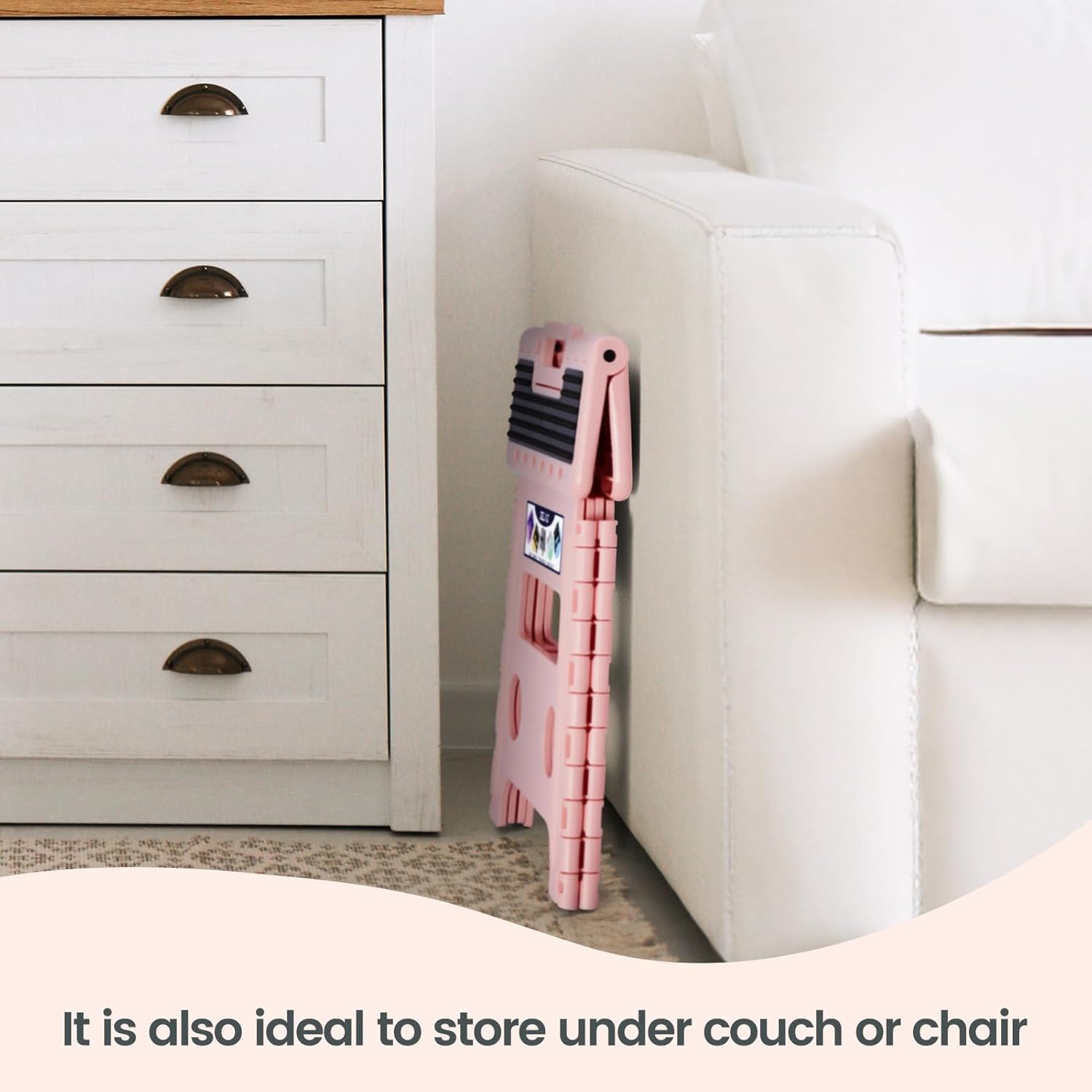 Delxo Folding Step Stool 13 Inch,Non-Slip Foldable Stools for Kids & Adults Up to 300 LBS,Kitchen Collapsible Fold Up Stepping Stool with Dotted 1 Pack,Pink