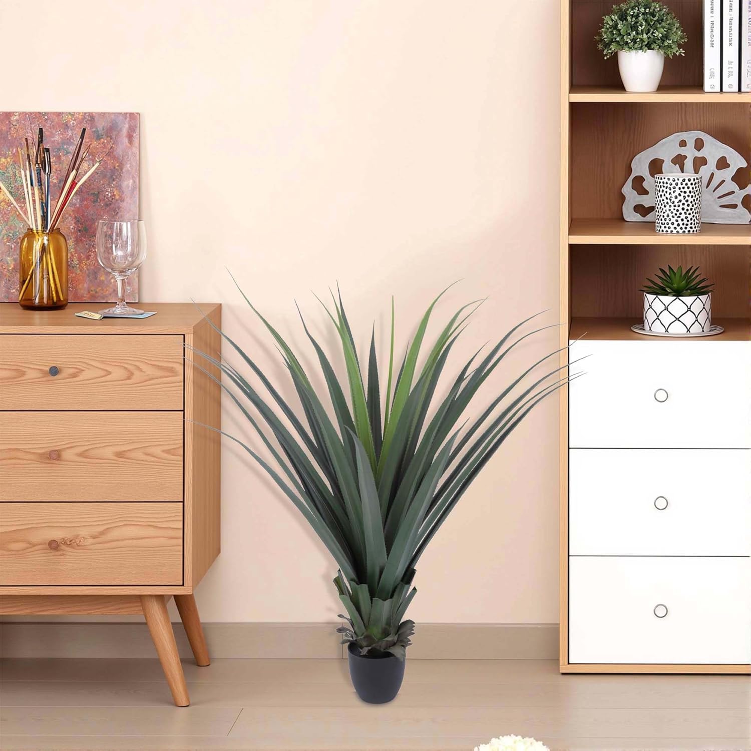 - [Specifications] The height of this artificial spiky agave plant is 40inch and is made of durable high-quality PE material. Artificial plants require no maintenance, just wipe with a damp cloth when dusty. Artificial spiky agave plants are soft to the touch and are great interior decoration for creating a healing space.