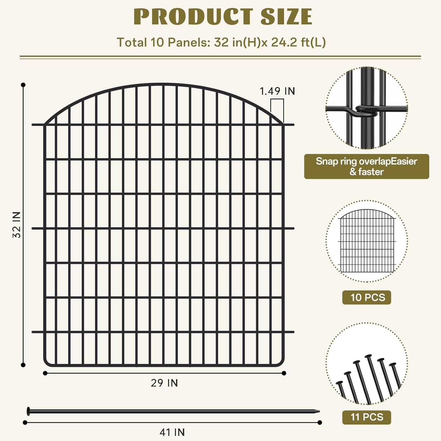 - TALL GARDEN FENCE - Single panel fence size: 32 in (H) X 29 in (L), total 10 panels size: 32in (H) X 24.2ft (L). The height is enough to block large dogs, and the longer length to meet more of your needs, you can connect these fences to any shapes you need