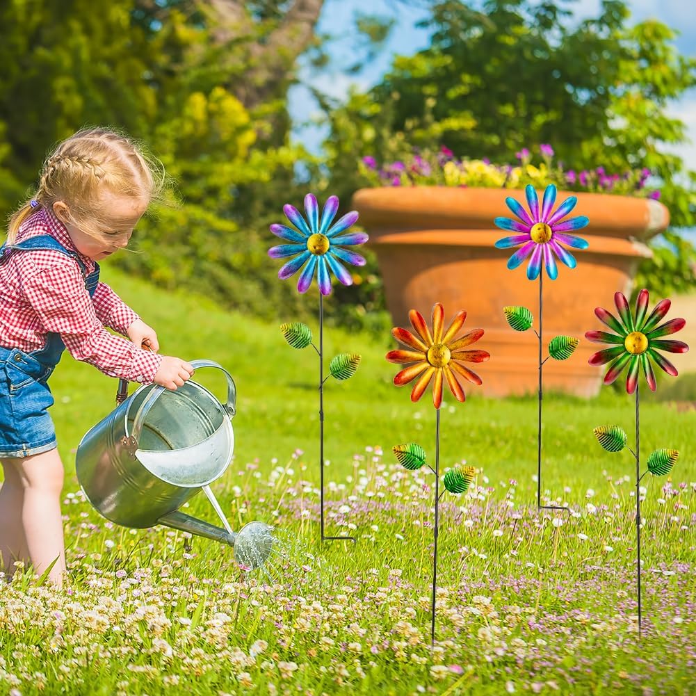- Metal Flowers Design: Our wind spinners outdoor with a unique flower shape, where each petal catches the wind to create mesmerizing motion. Whether you're looking to enhance your garden decor for outside or add a playful touch to your patio, these metal flowers wind spinners are the perfect choice.