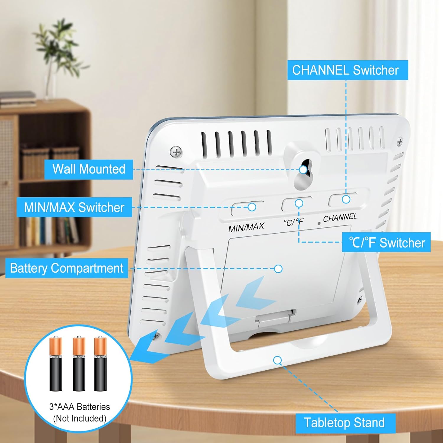 - Easy to Use: Simple and concise design, the indoor thermometer easy to read and operate. It is powered by 3 AAA batteries (not included). Features desk stand or wall-mountable to meet your want