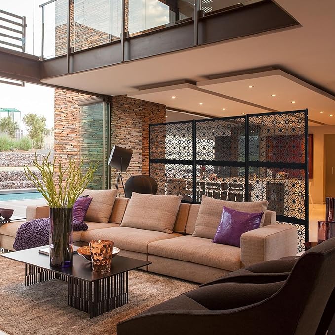 - 【Durable Material】Our patio privacy screens can be used both outdoors and indoors. The outdoor privacy screens are made of thick, sturdy galvanized steel and UV inhibitors to protect the screen partitions from fading and rusting. Also, equipped with waterproof and fire-resistant properties, it delivers worry-free operations for years. Whether exposed to rain, sun, or wind, the screen is made to endure, making it an ideal choice for long-term outdoor use