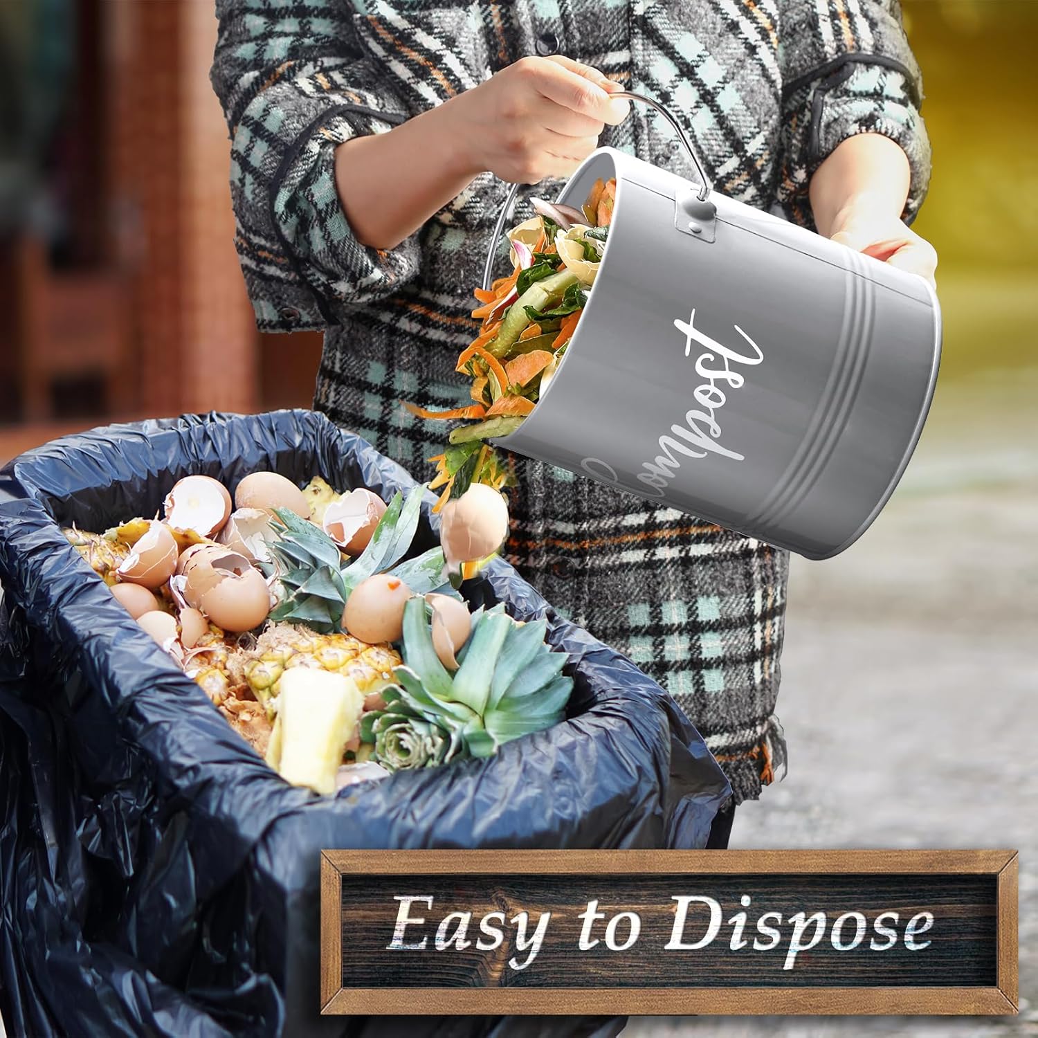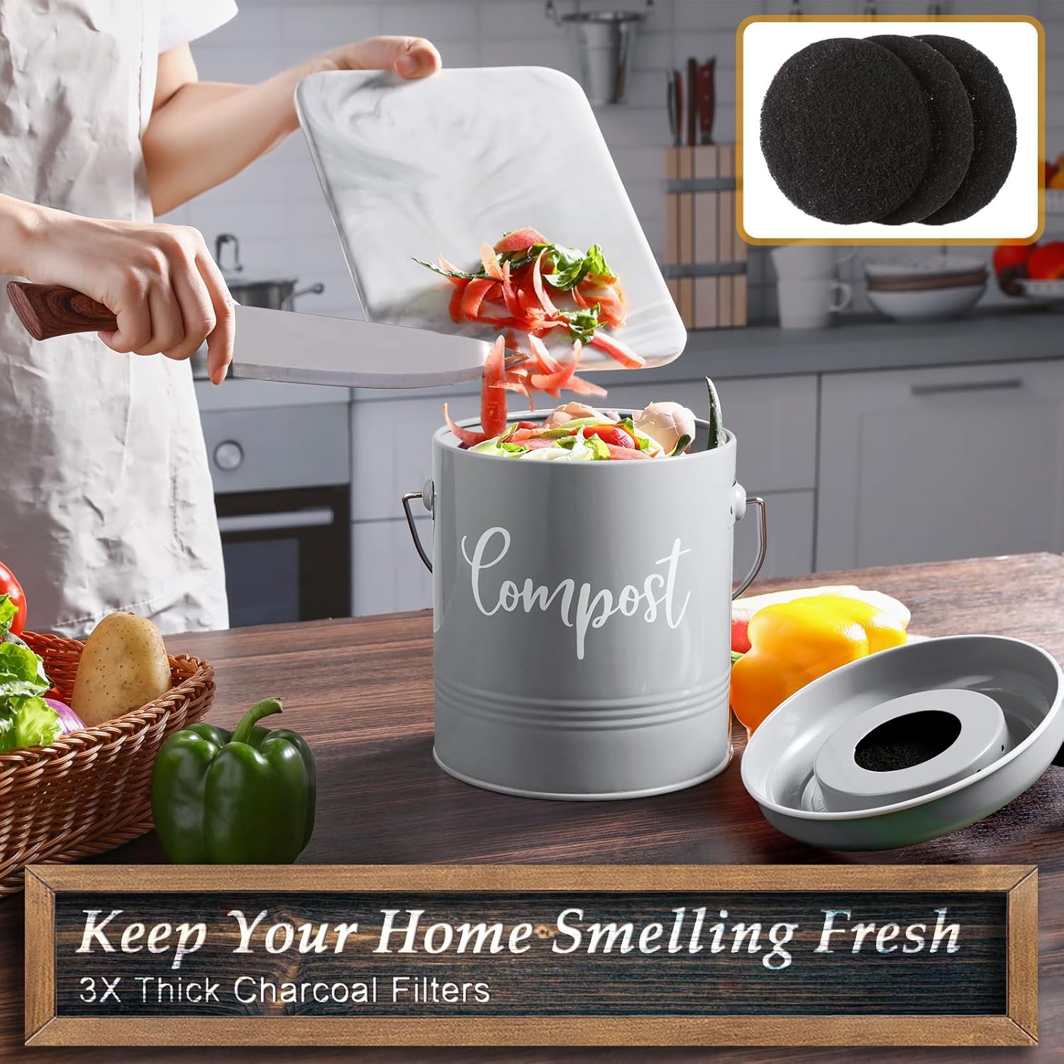 Gray Compost Bin Kitchen, 1.3 Gallon Farmhouse Kitchen Compost Bin Countertop with Lid and Charcoal Filters, Indoor Compost Bucket for Decor and Accessories