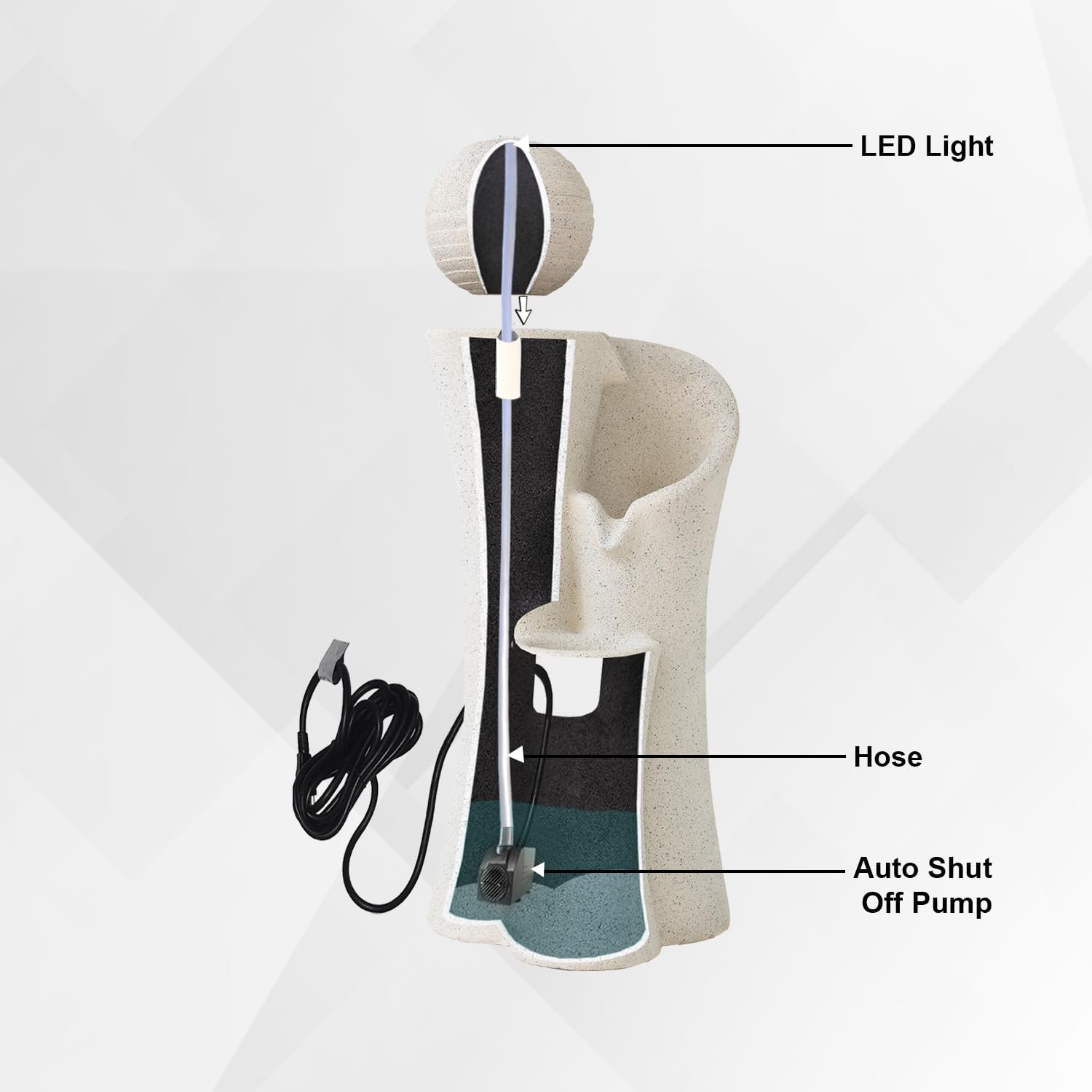 - DURABLE & WEATHER-RESISTANT MATERIAL: Crafted from high-quality resin, this lightweight yet sturdy fountain is designed for long-lasting outdoor use; its durable construction withstands various weather conditions while maintaining its stylish appearance.
