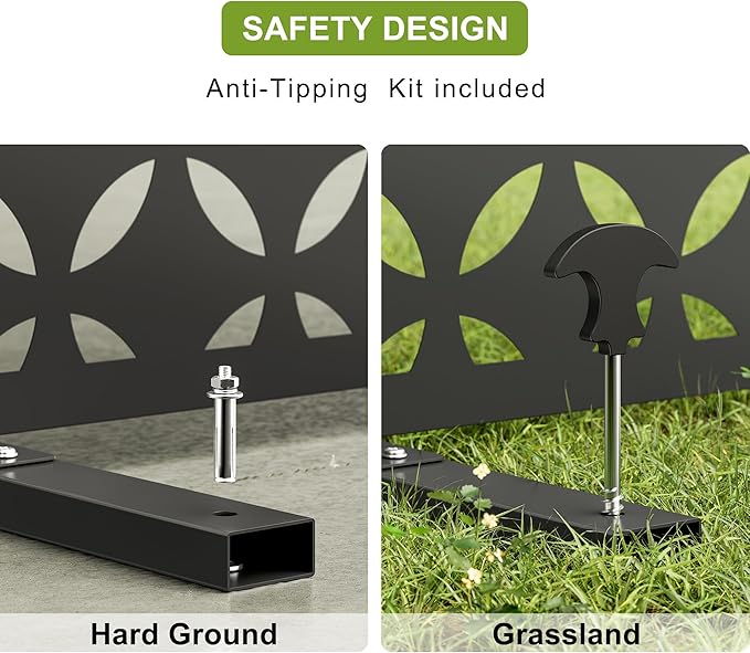 - Safety First: Includes an anti-tipping kit and a dual anchoring system with ground anchors and spikes for secure installation on various surfaces, ensuring stability and safety.