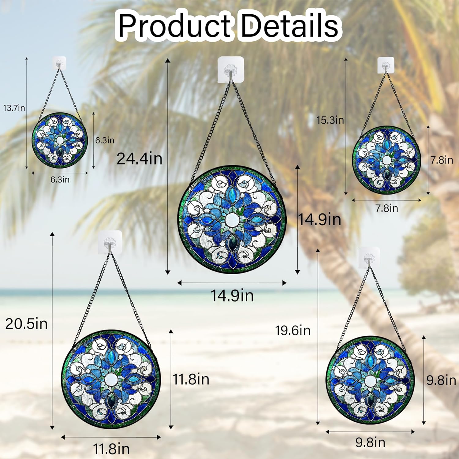 - Versatile and Easy to Hang: This stained glass window panel is a breeze to install with its included metal chain. Beautiful patterns are the perfect addition to your windows, doors, and home.