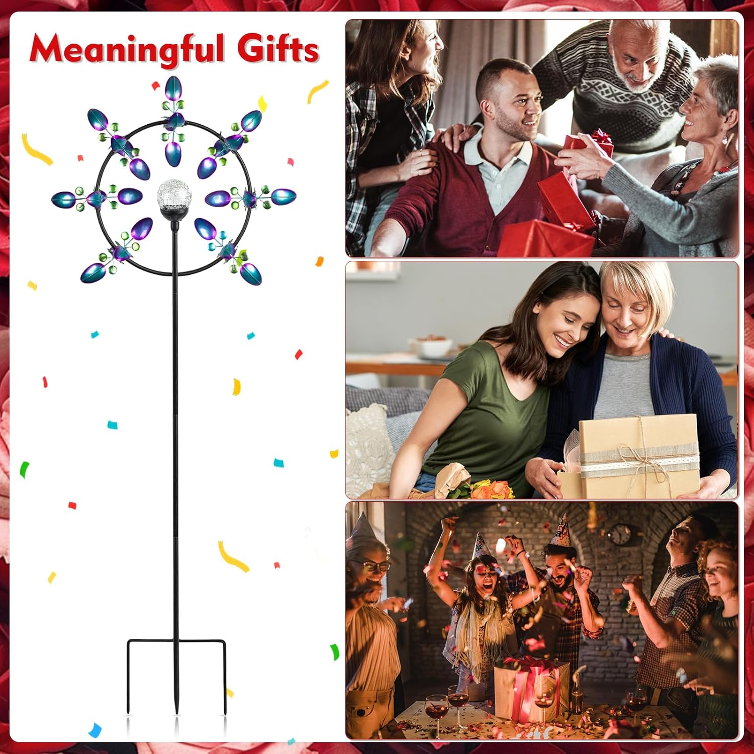 - 【Multi-Scene Application & Gift-Worthy】Multi-coated metal material resists sun and rain, suitable for long-term outdoor use. A perfect gift for birthdays, holidays, Christmas, Mother’s Day, adding dynamic artistry to garden, yard or patios.
