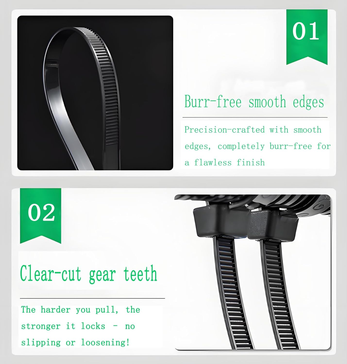 - Durable & Strong: These heavy-duty black zip ties can withstand up to 200 lbs of tension, making them ideal for industrial and outdoor use.